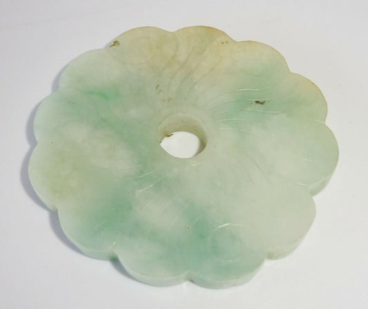 20C Chinese Jadeite Jade Incised Petal Motif Disk Carving (FeO) #37a