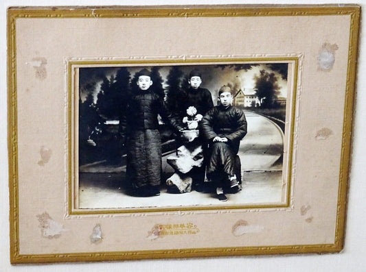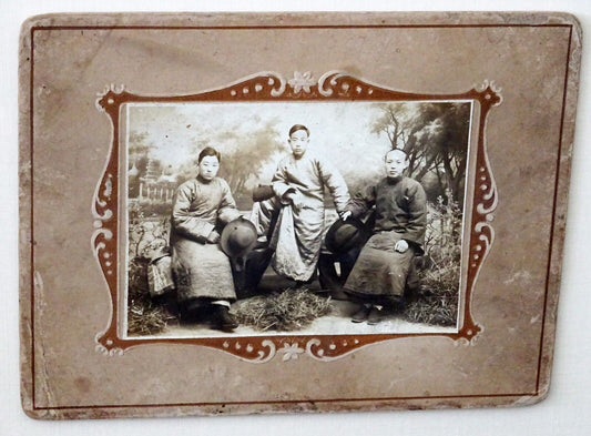 1900 Chinese Framed B&W Photo "Three Brothers in Robes" by unmarked (Mil)