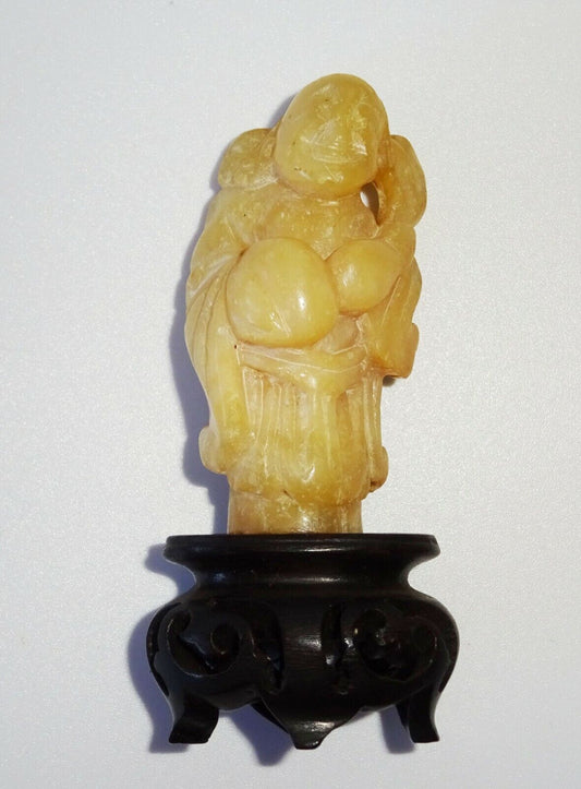 19/20C Chinese Yellow Jade Carving Deity & Gourd on Fitted Stand (FeO)#39