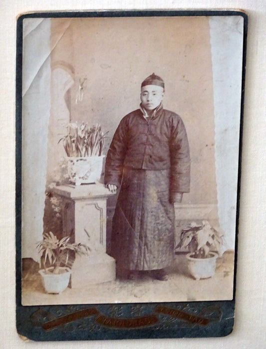 1900 Chinese Framed B&W Photo "Young Man" by Yungt Schang & Co. Tsing Tau (Mil)