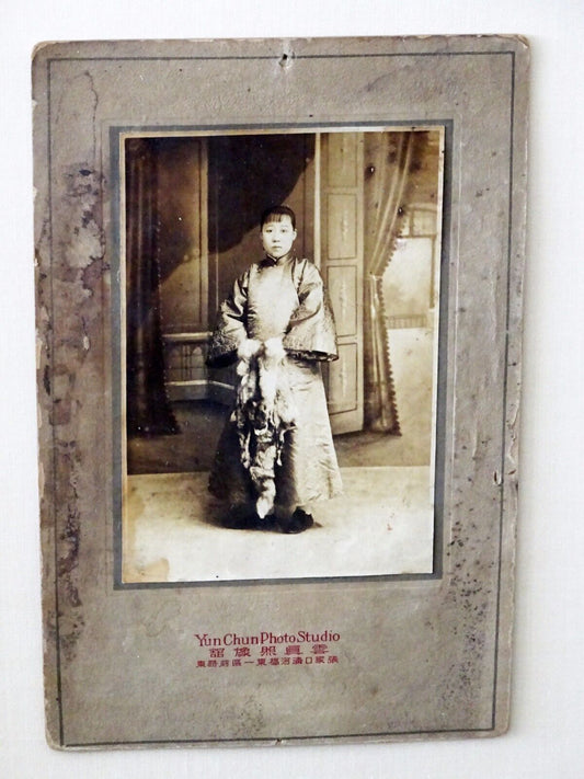 1900 Chinese Framed B&W Photo "Young Woman" by Yun Chun Photo Studio (Mil)