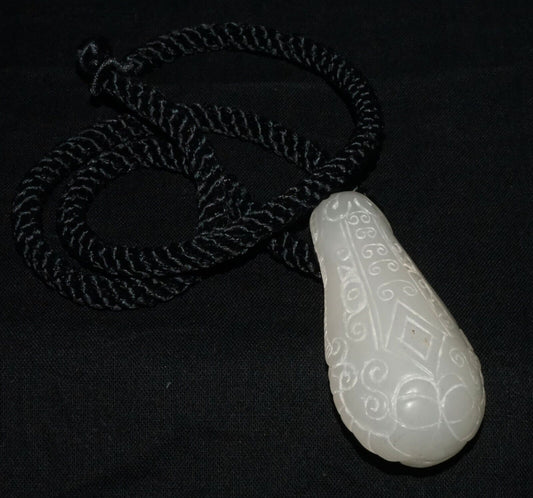 Vtg. Chinese Archaistic Motif White Nephrite Jade Belt Ornament Pendant (InS)#L4