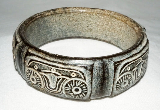 Vintage Chinese Steatite Archaistic Relief Carved Bangle Bracelet (LeS) B43