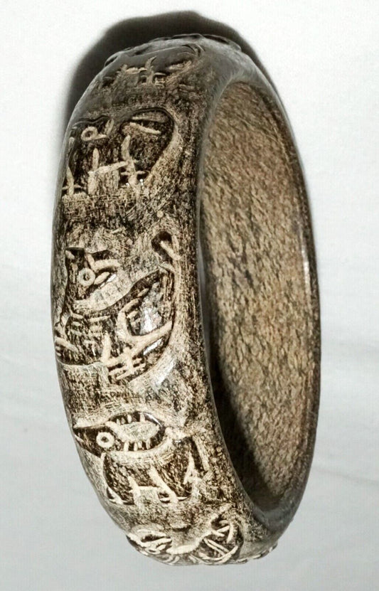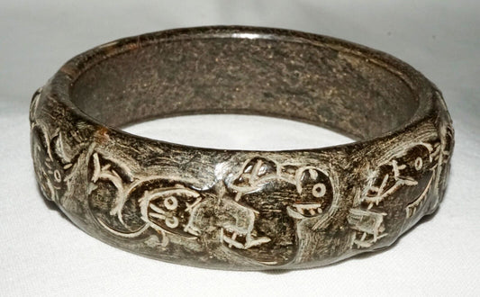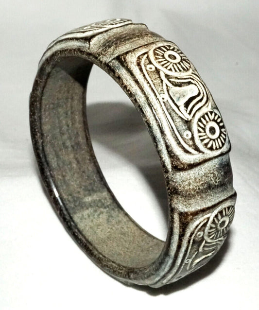 Vtg. Chinese Steatite Archaistic Relief Animal Carved Bangle Bracelet (LeS) B46