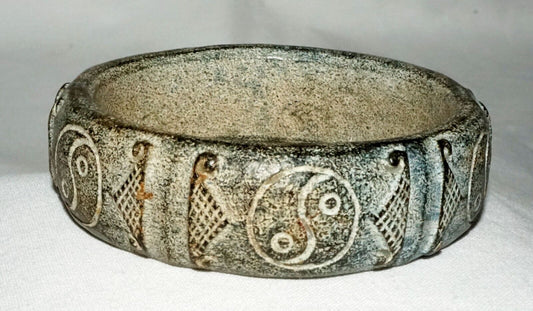 Vtg. Chinese Steatite Relief Yin & Yang Motif Carved Bangle Bracelet (LeS) B47