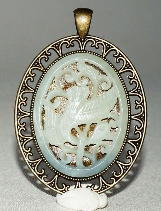 20C Chinese Pierced Oval Pendant set w. Pierced Jade Plaque Phoenix Motif (***)