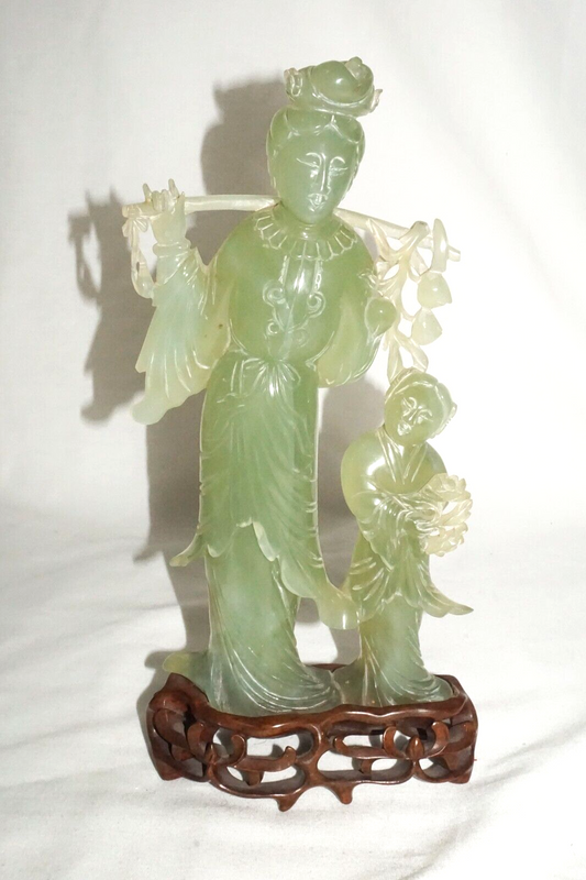 Vintage Chinese Soapstone Carved Robed Female & Male Figure Sculpture (WiR)