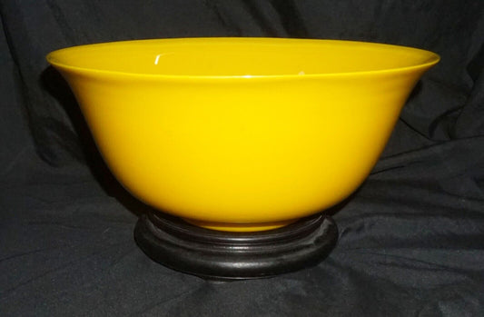 18/19C Chinese Qing Marked LG Yellow Peking Glass Bowl & Stand Qianlong (MiM)
