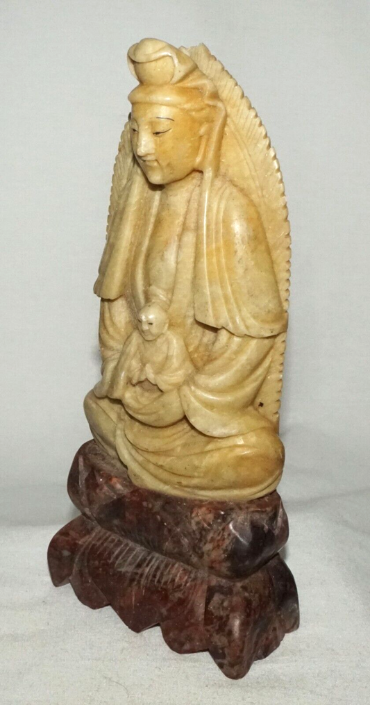 Vintage Chinese Soapstone Carved Buddha on a Lotus Base Sculpture (AHB)