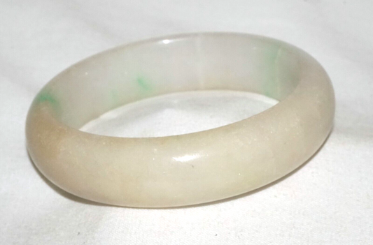 Vintage Chinese Yellowish Off White & Green Jadeite Jade Bangle Bracelet (InS#L3