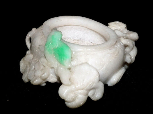 Vintage Chinese White & Apple Green Jade Mini Brush Washer Dragon Bird (LeS) G11