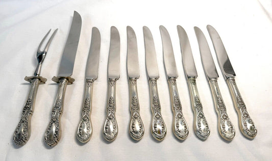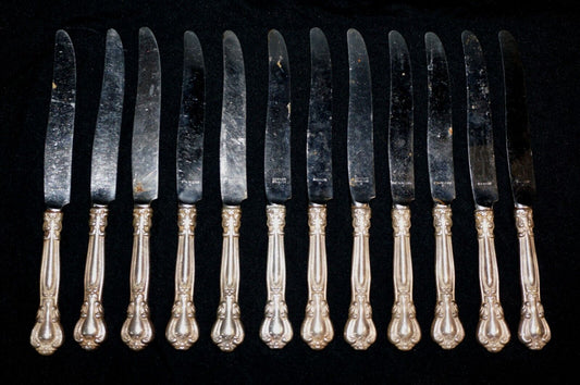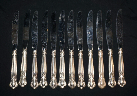 12Pc American Sterling Silver Dinner Knives 9 1/8"- Gorham Chantilly 1895 (ChB)