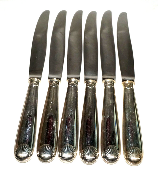 6Pc France Silver Plated Dinner Knives Lot Shell Vendome Pat Christofle (NiC) L1