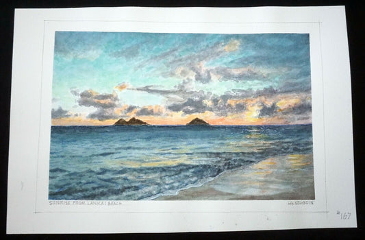 Hawaii Watercolor Painting "Sunrise from Kualoa Park, Oahu" by L. Segedin #142
