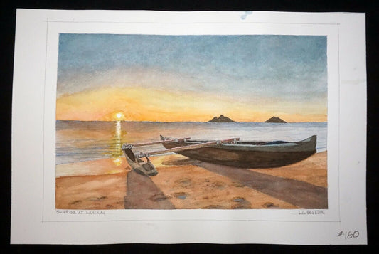 Hawaii Watercolor Painting Outrigger Canoe Sunrise @ Lanikai by L. Segedin #160