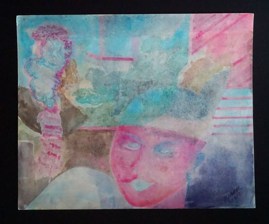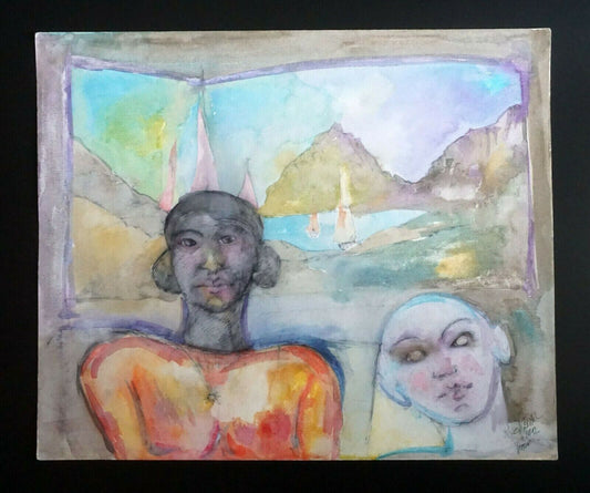 '80s France Hawaii Outsider Art WC Painting Female Figure Claude Vedel (EtJ)#37