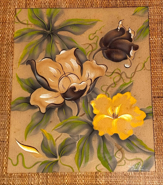 (2x) 1950's Hale Pua Hawaii Airbrushed Floral Paintings by Frank Oda (KuK)