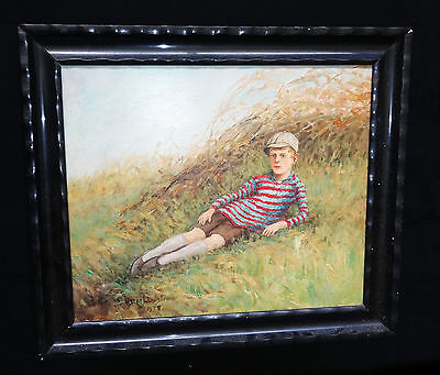1928 SWEDISH OIL PAINTING "RECLINING YOUNG BOY" by OSCAR LINDSTROM (***)