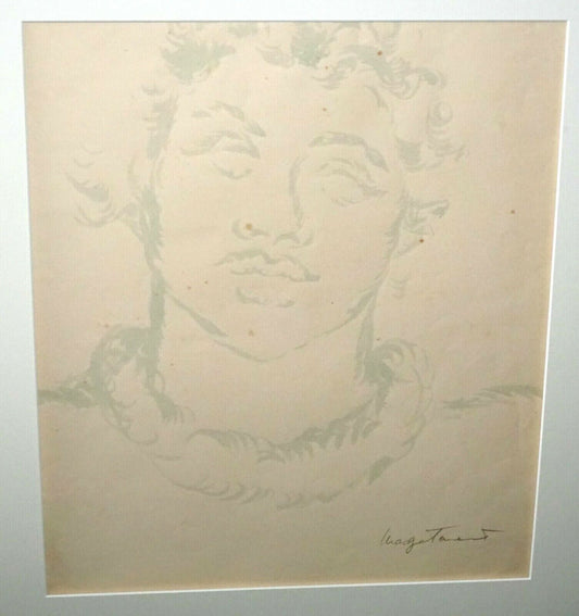 1950s Hawaii Pastel Painting "Young Man" by Madge Tennent (1889-1972)(DAT)#12