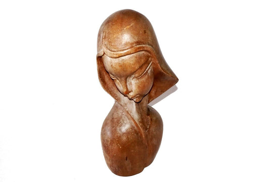 1940s Art Deco Hawaiian Madonna Bust Monekypod Wood Carving (***)