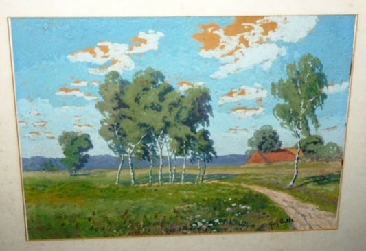 1930s German Gouache Painting "Country Road" by Franz Dudde (1889-1965)(***)