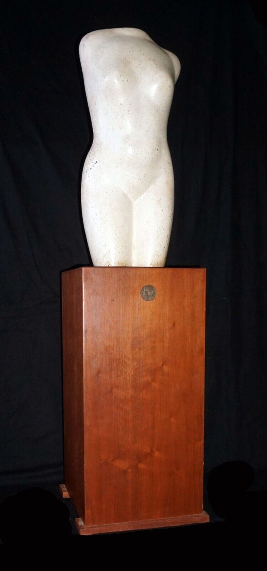 1930s Italy/CA White Stone Sculpture Torso by Beniamino B. Bufano on Stand (OkJ)