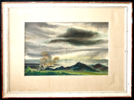 1939 Hawaii Watercolor Painting Suger Cane Plantation by Ben Norris (PeN)