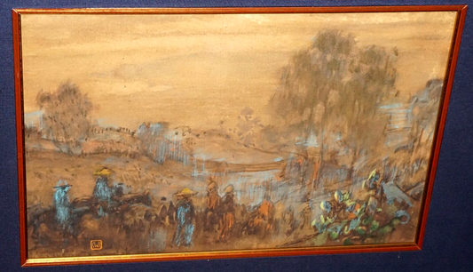 1920s Hawaii WC & Pastel Painting Riding to Kula Maui by Charles Bartlett (LLA)