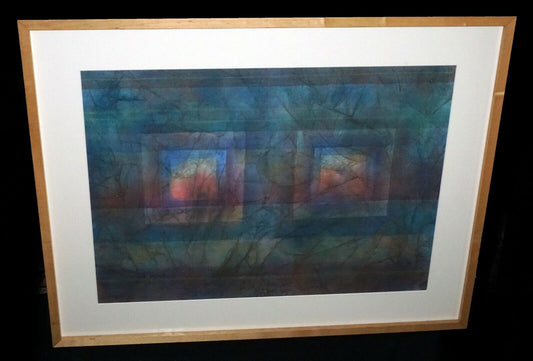 '03 Hawaii Modernist Watercolor Painting Square Eyes by Charles Eisho Higa (HeN)