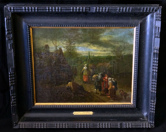 17C Belgian Oil Panel Painting Country Road attributed Gillis van Tilborgh (SnE)