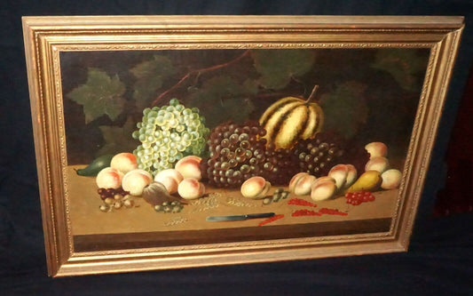 1826 American Oil Still Life Painting Fruit on Table By Richard Howe (NeW)