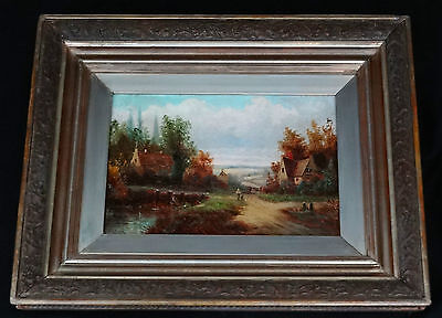 1800 ENGLISH/DUTCH OIL PAINTING "COUNTRY ROAD & VILLAGE" by R. VALTEN (Jos)