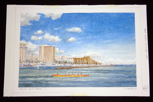 Original Hawaii Watercolor Painting "Ala Wai Yacht Harbor I" by L. Segedin #5