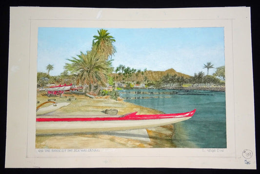Orig. Hawaii Watercolor Painting "On the Banks of the Ala Wai" by L. Segedin #39