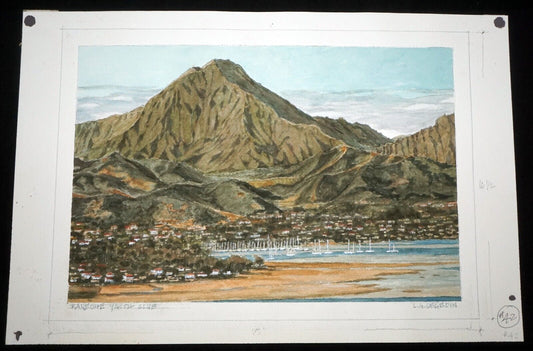 Orig Hawaii Watercolor Painting "Diamond Head from Kakaako" by L. Segedin #70
