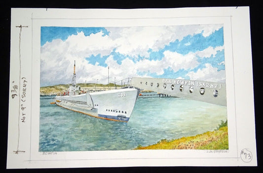 Orig Hawaii Watercolor Painting "U.S.S. Bowfin Pearl Harbor" by L Segedin #73