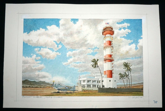 Orig. Hawaii Watercolor Painting "Flight Tower @ Ford Island" by L. Segedin #37