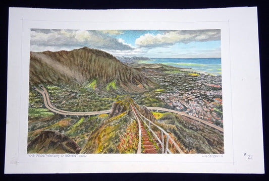 Orig. Hawaii Watercolor Painting "H3 from Stairway to Heaven" by L Segedin #21