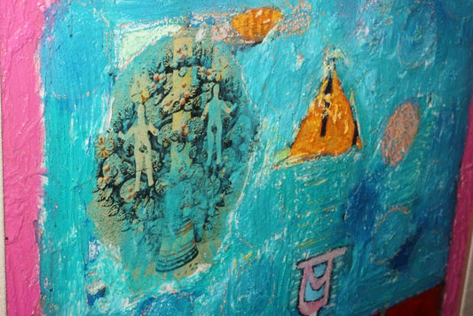 Mexican Mixed Media Painting Jester w. Adam & Eve by Oscar Bernal (b.1945)(NoN)