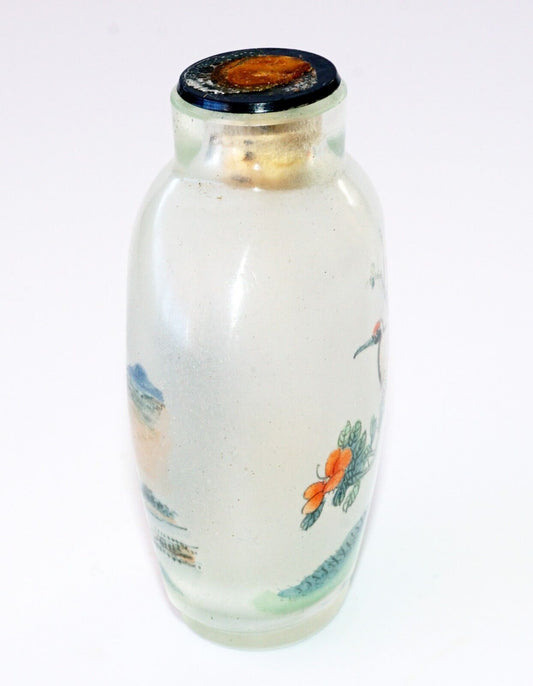 20C Chinese Inside Painted Crane & Landscape Glass Snuff Bottle w. No Stop (Pal)