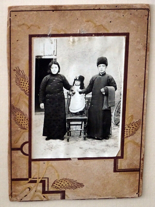 1900 Chinese Framed B&W Photo "Family in Winter Clothing" by unmarked (Mil)