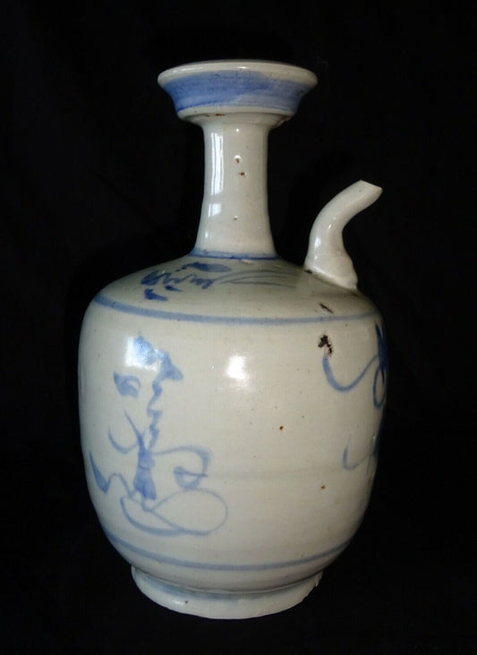 17C Chinese Blue & White Glaze Floral Motif Pottery Wine Ewer (HeN) IC