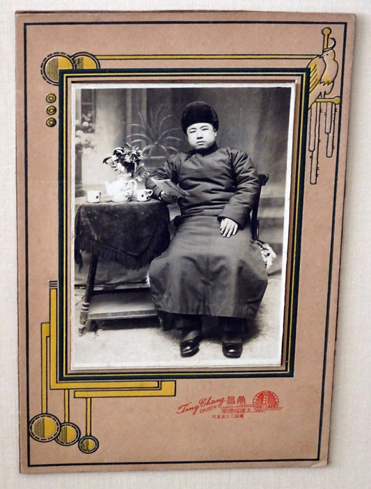 1900 Chinese Framed B&W Photo "Man of Means" by Ting Chang of Dairen (Mil)