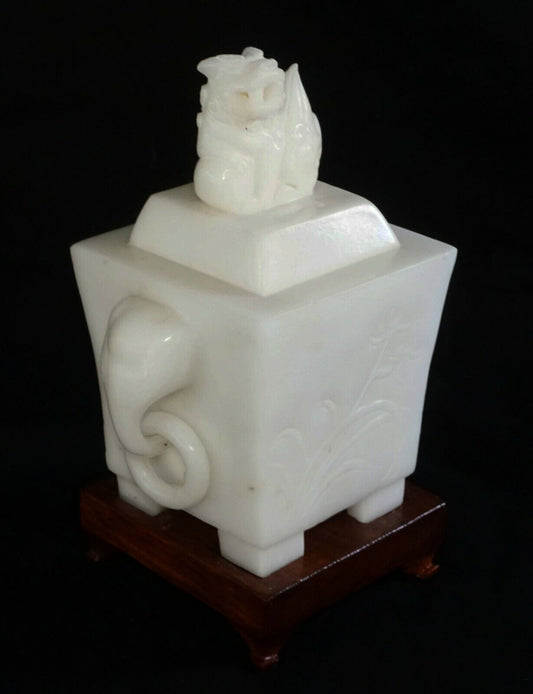 1900 Chinese Alabaster Incense Burner w. Elephant Handles on Fitted Stand (AHB)