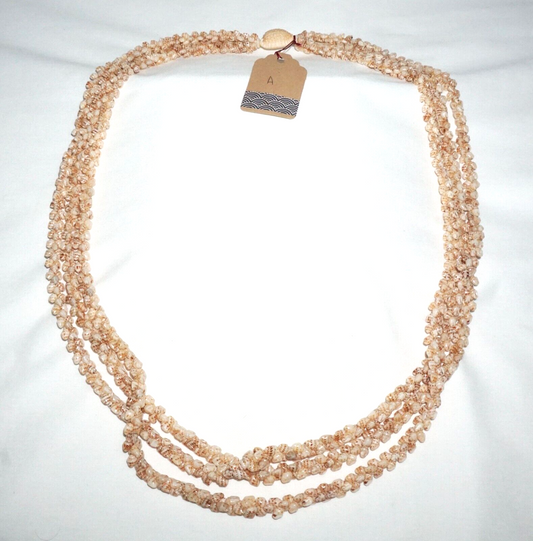 Vintage Hawaii 3x Strand Pikake Style Spotted Brown Niihau Shell Necklace (KiA)A