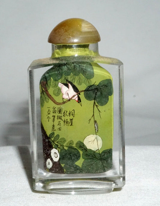 Vintage Chinese Reverse Painted Glass Snuff Bottle w. Birds & Flowers (LeS)
