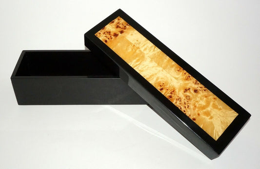 Vintage Japanese Black Lacquer Covered Box w. Honey Burl Inlaid Accent (CWo)