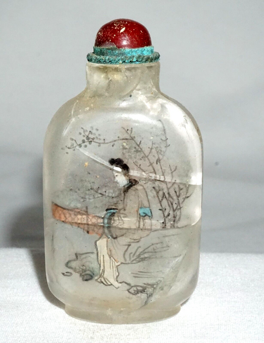 Vtg Chinese Reverse Painted Glass Snuff Bottle Seated Figure in Landscape (LLA)