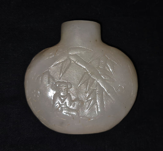 Vintage Chinese White Jade Snuff Bottle w. Figure in a Garden Motif (AHB)