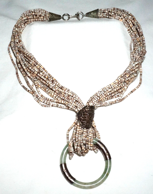 Vtg Shell Bead 18x Strand Necklace w. Jade Bangle Pendant Masha Archer (GeB)#16